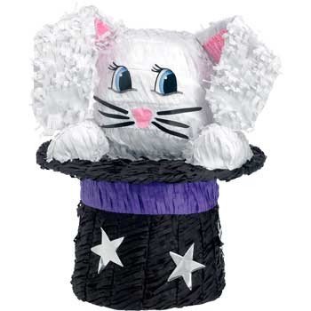 Magic Rabbit Pinata, This rabbit in a hat pinata measures 13.5 inches tall, 10.5 inches wide, and 7 inches deep. Perfect for your next magic show or birthday party. Please Note: pinatas are not filled.